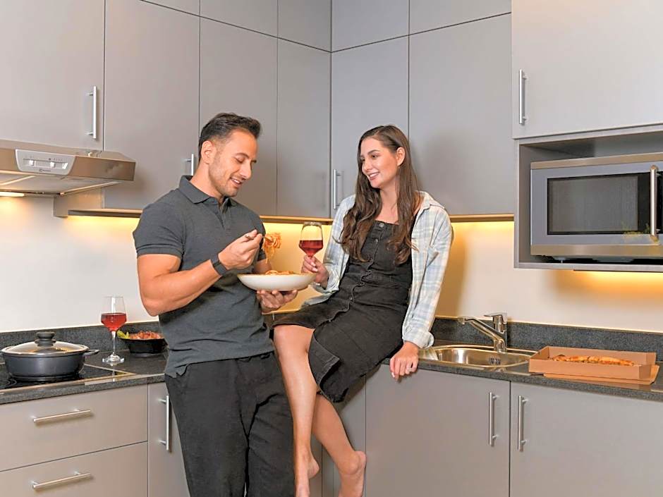 Offering free toiletries, this apartment includes a private bathroom with a shower, a hairdryer and slippers. The well-equipped kitchen features a refrigerator, a microwave and a toaster. The apartment offers air conditioning, a dining area, an electric kettle, a flat-screen TV, as well as city views.